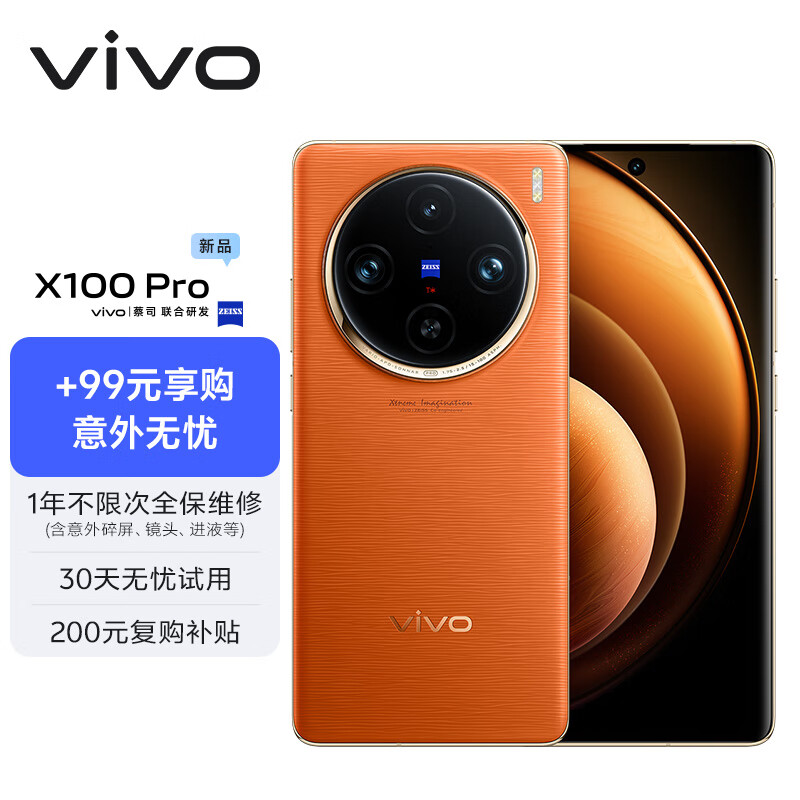 vivo X100 Pro 12GB+256GB 落日橙【意外无忧套装】蔡司APO超级长焦 蓝晶×天玑9300 5400mAh蓝海电池 手机价格:5098.00元!