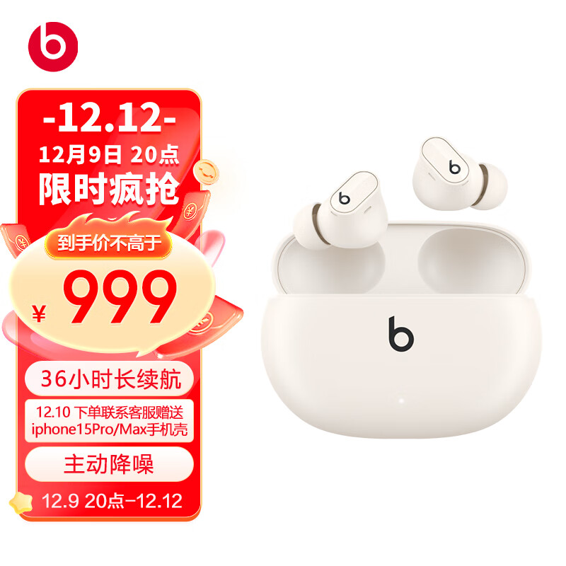 beats Beats Studio Buds + (第二代) 真无线降噪耳机 蓝牙耳机 兼容苹果安卓系统 象牙白价格:999.00元!