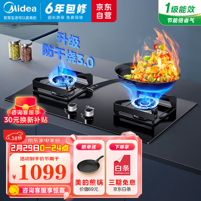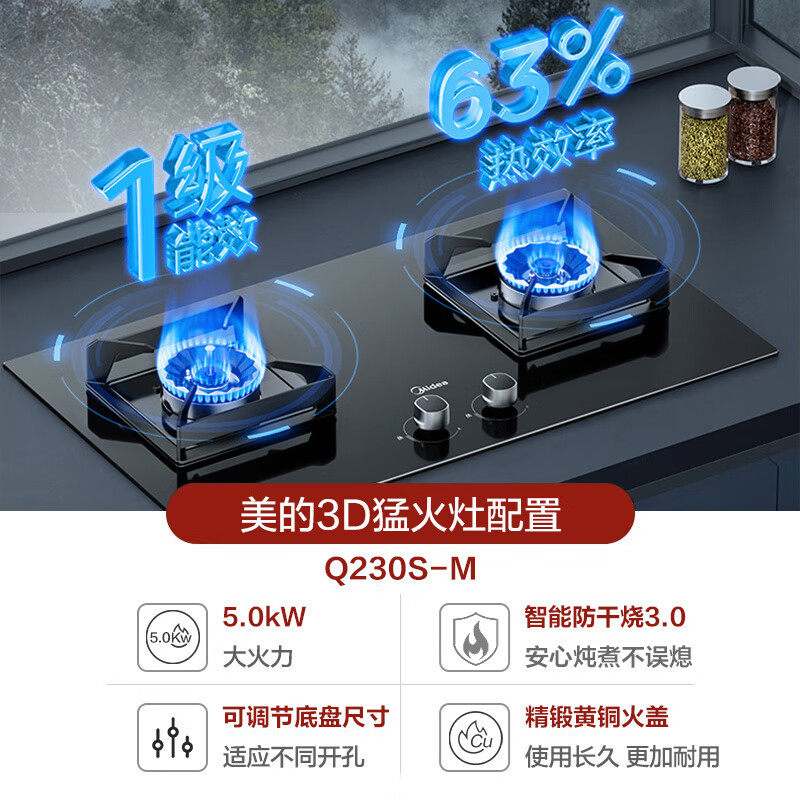 美的燃气灶天然气 煤气灶双灶 铜火盖 5.0kW大火力灶具 家用台嵌两用 防干烧灶具 Q230S-M价格:1099.00元!