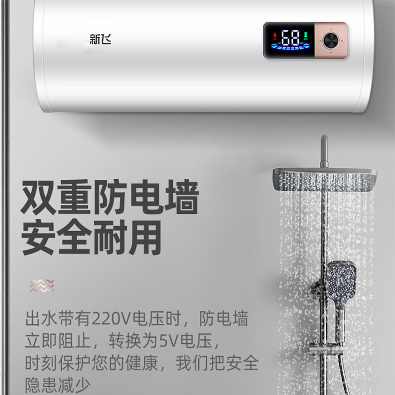 新飞热水器2000W速热省电节能100升储水式耐用二级能效防电墙全屋漏电预警电热水器 DSZF-100A1价格:568.00元!
