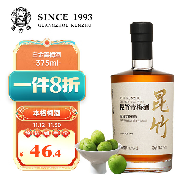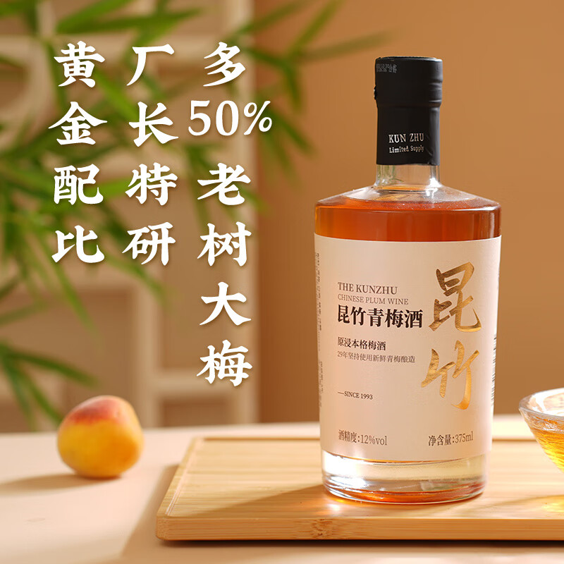 昆竹牌青梅酒白金版 12度 375ml 广东龙门特产果酒甜酒 女士果酒 单支装价格:58.00元!