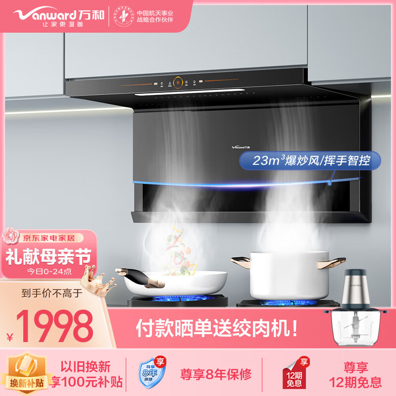 万和(Vanward)顶侧双吸7字型家用抽油烟机 68%高热效燃气灶具烟灶套装 23m3/min大吸力WL856+G6L50(液化气)价格:1998.00元!
