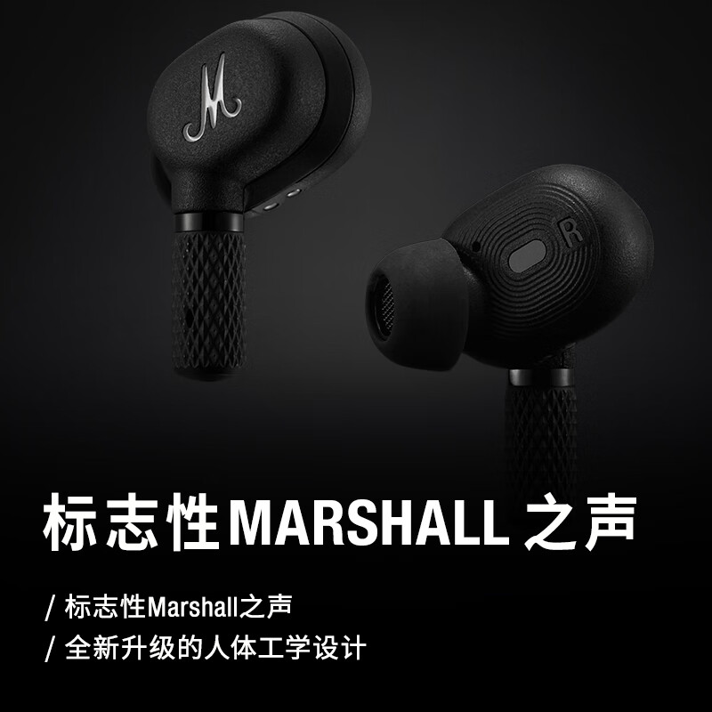 MARSHALL(马歇尔)MOTIF ANC耳机真无线主动降噪防水无线蓝牙耳麦 黑色价格:1599.00元!
