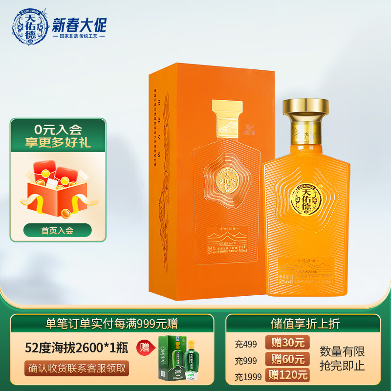 天佑德 唐古拉山 清香型白酒 52度 500ml 单瓶装【青海青稞酒】价格:358.00元!