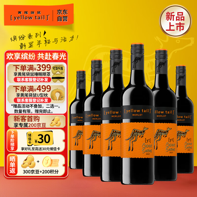 黄尾袋鼠(Yellow Tail)缤纷系列 梅洛红葡萄酒智利版 750ml*6瓶价格:264.10元!
