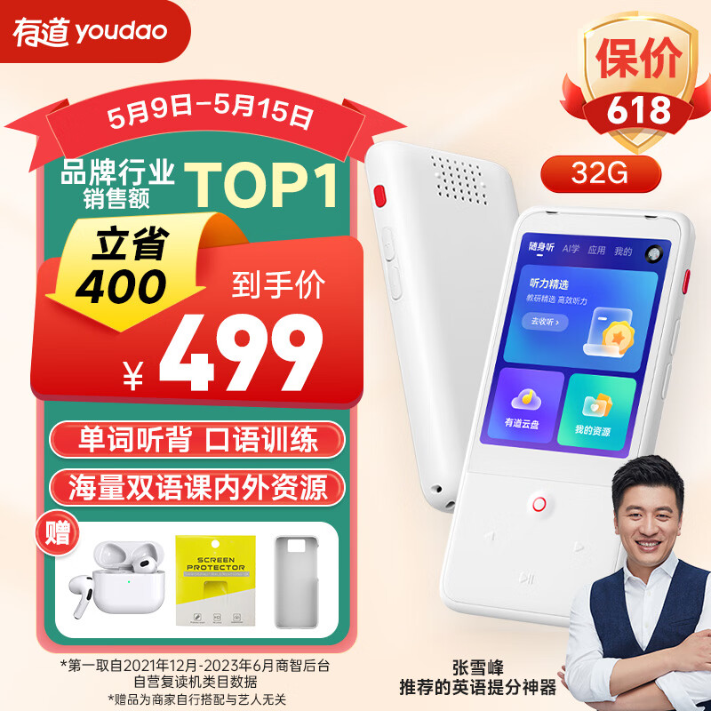 有道英语听力宝 复读机英语听力学习机随身听单词记背磨耳朵神器 听力训练小学初中高中学生听力机32G价格:499.00元!