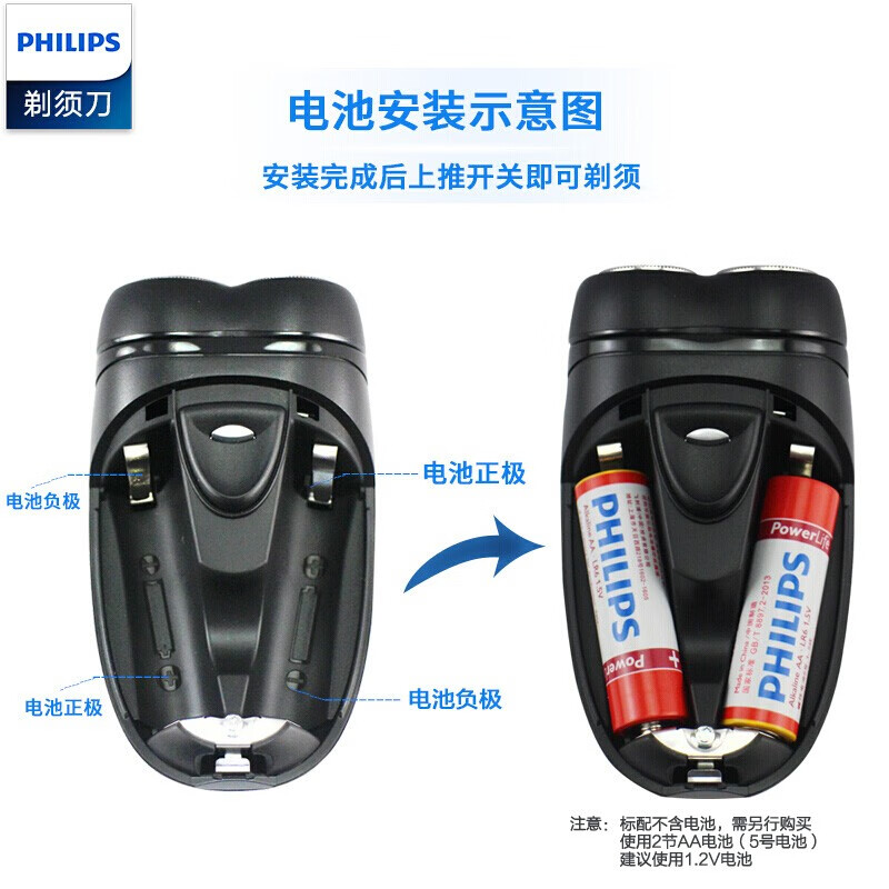 飞利浦(PHILIPS)剃须刀电动男士刮胡刀胡须刀 便携式须刨 生日礼物送男友送父亲迷你实用 【经典干电池便携款】PQ206/18 便携装价格:209.00元!