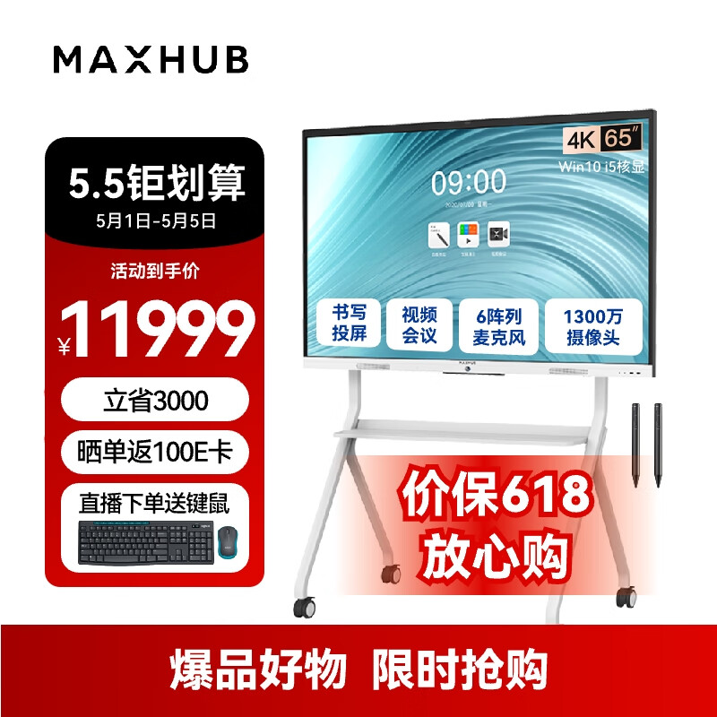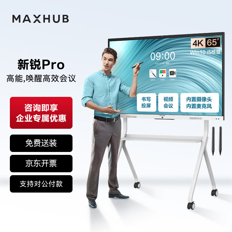 maxhub视频会议平板一体机教学智慧屏摄像头麦克风触摸屏白板解决方案新锐Pro65 Win10+时尚支架价格:13839.00元!