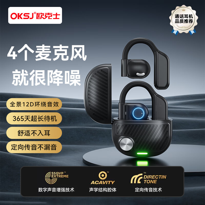 OKSJ蓝牙耳机挂耳式骨传导概念不入耳开放式 无线耳夹式商务通话降噪运动外卖舒适定向传音不漏音价格:129.00元!