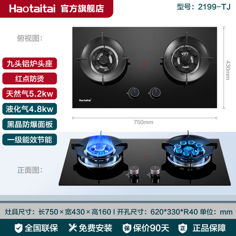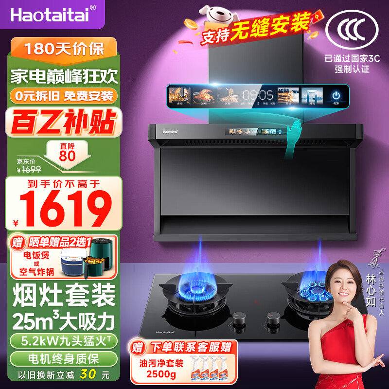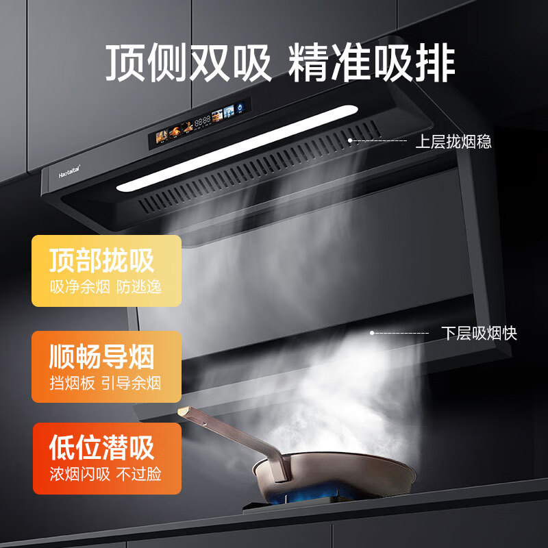 Haotaitai油烟机顶侧双吸烟灶套装DG803S吸油烟机+2199-TJ燃气灶5.2KW猛火灶具-天然气价格:1619.00元!
