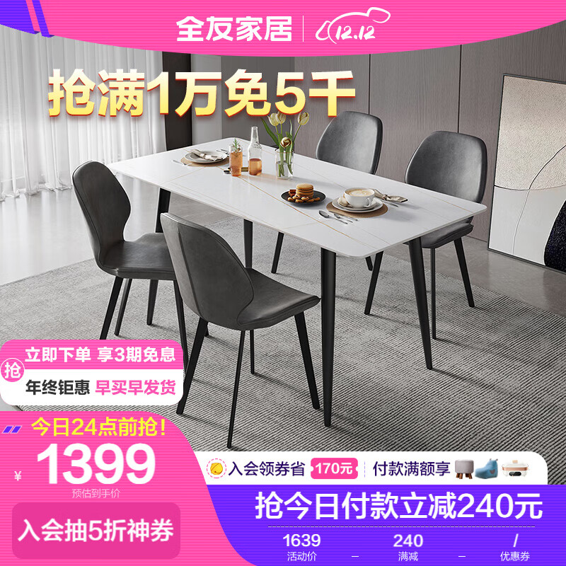 全友家居岩板餐桌家用轻奢现代简约餐桌椅饭桌小户型餐桌价格:1639.00元!