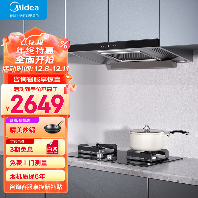 美的(Midea)抽油烟机燃气灶具套装23风量欧式顶吸 三腔家用吸油烟机自动清洗烟灶套装TQ307+Q230A液化气价格:2649.00元!