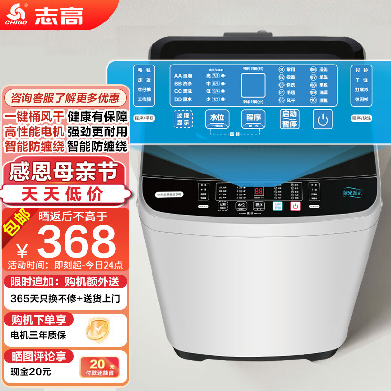 志高(CHIGO)洗衣机小型家用全自动波轮洗衣机6.5公斤 智能洗脱一体机 蓝光洗护强劲电机仿生手洗 灰色价格:388.00元!