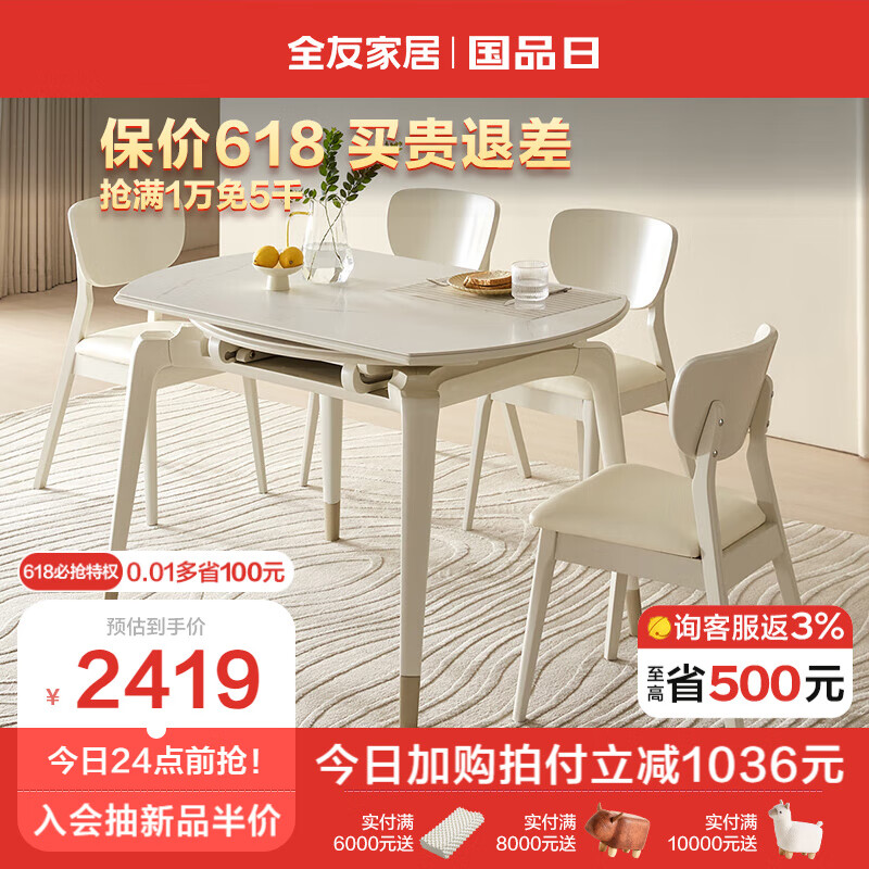 全友家居 餐桌现代简约岩板餐桌可圆可方伸缩功能吃饭桌子家具DW1121B价格:3455.71元!