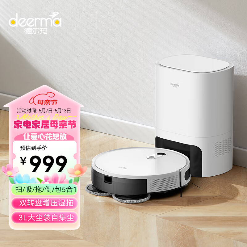 德尔玛(Deerma)A10 扫地机器人自集尘扫拖一体智能家用吸尘器扫地拖地一体机 扫拖价格:1499.00元!