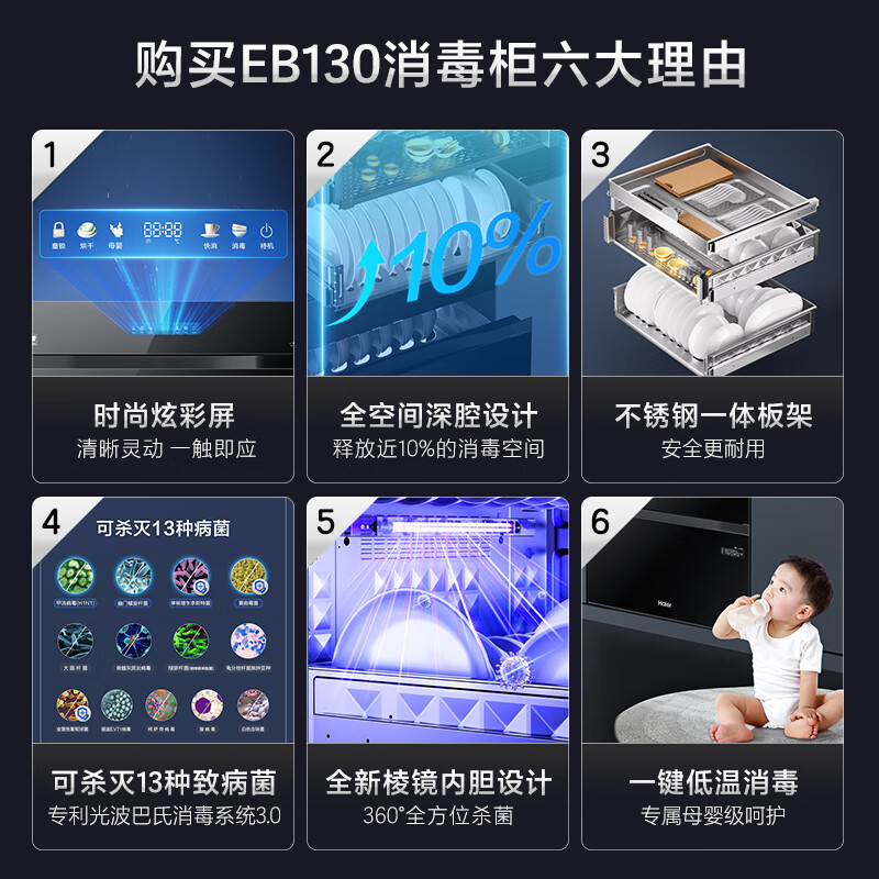 海尔(Haier)消毒柜嵌入式 130L三门三抽大容量 家用消毒碗柜 紫外线+光波巴氏消毒新升级 婴儿奶瓶EB130价格:2199.00元!