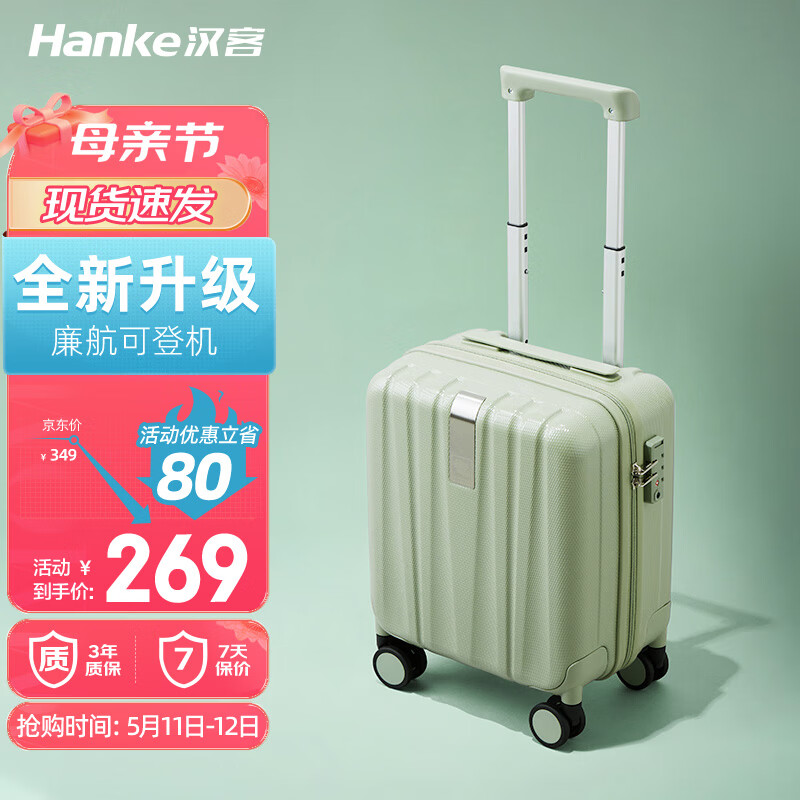 汉客行李箱男拉杆箱女登机旅行箱14英寸青竹绿密码箱镇店之宝再次升级价格:349.00元!