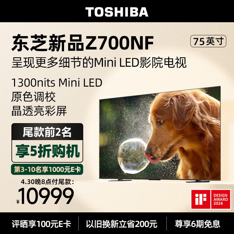 东芝显微屏电视75Z700NF 75英寸高光效Mini LED 4K144Hz高刷 BR芯片 液晶平板游戏电视机 以旧换新价格:10999.00元!