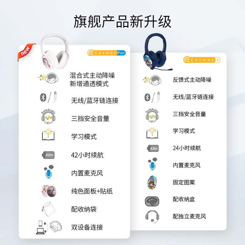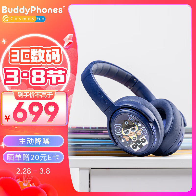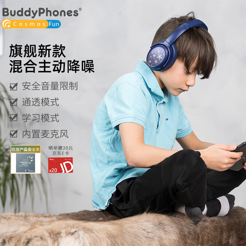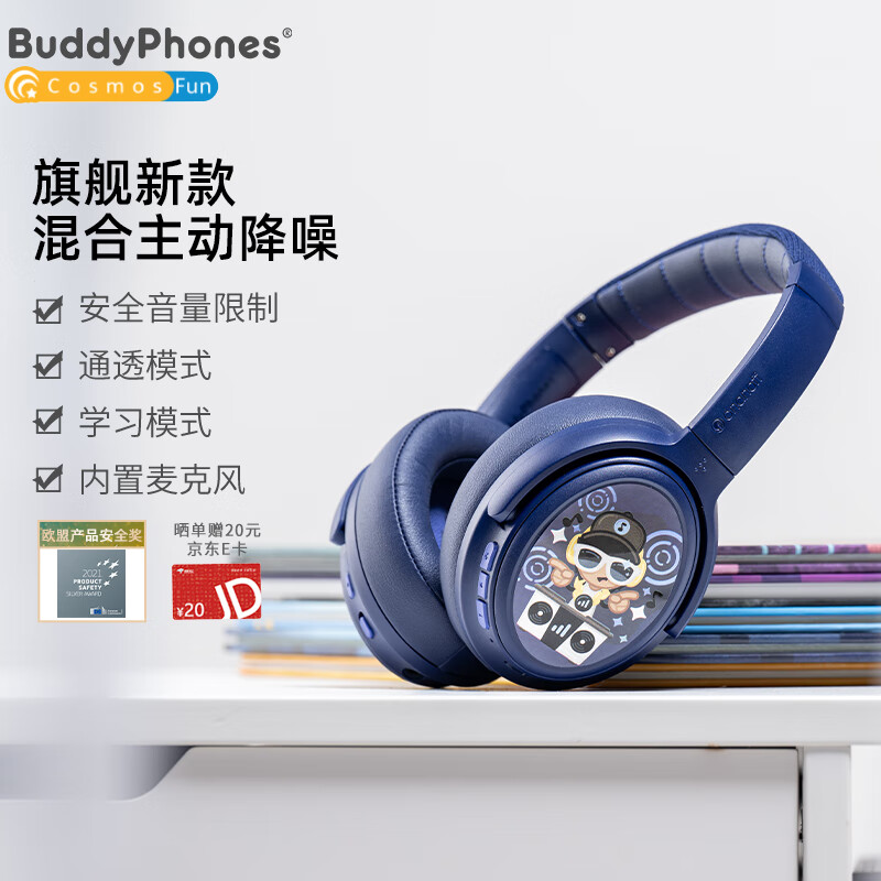 onanoff BuddyPhones儿童耳机头戴式主动降噪 大耳包蓝牙无线网课学习学生耳机 持久续航 CosmosFun海军蓝价格:799.00元!