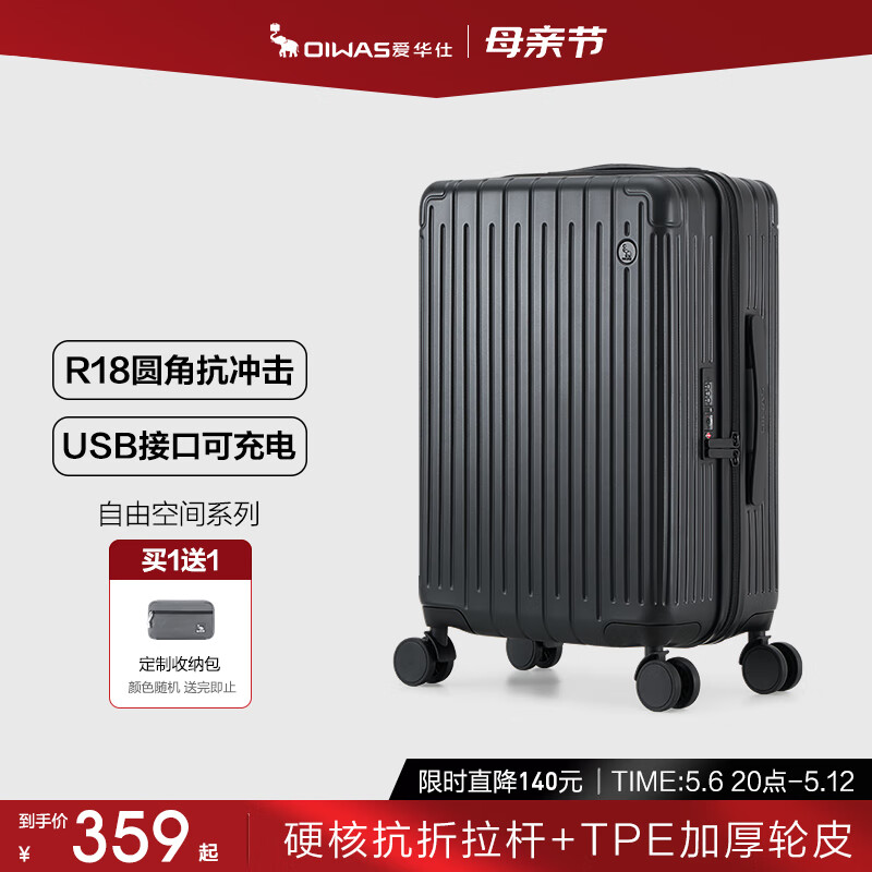 爱华仕行李箱20英寸男小型拉杆箱女万向轮登机箱旅行箱轻便密码箱骑士黑价格:499.00元!
