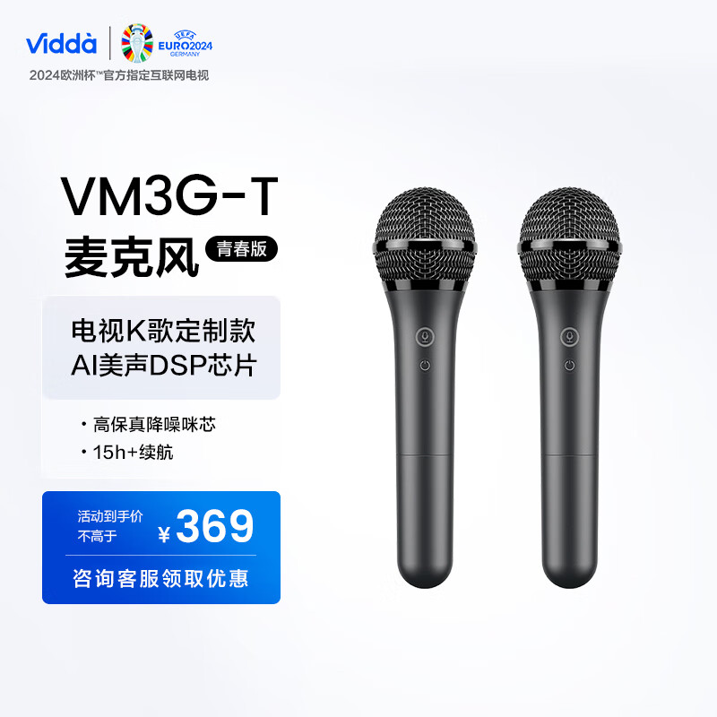 Vidda 海信 麦克风 VM3G-T 海信电视 Vidda电视定制麦克风 天籁K歌 无线麦克风 家庭KTV 双支套装价格:364.00元!