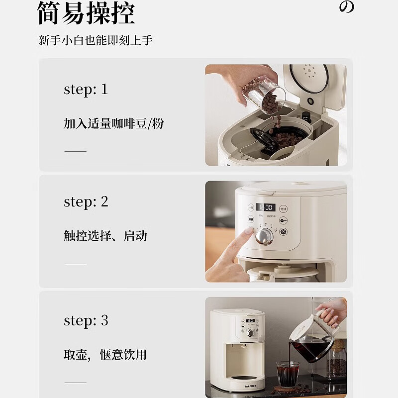 赛普达 EQ20美式咖啡机磨豆一体全自动家用小型智能滴漏办公室 价格:399.00元!