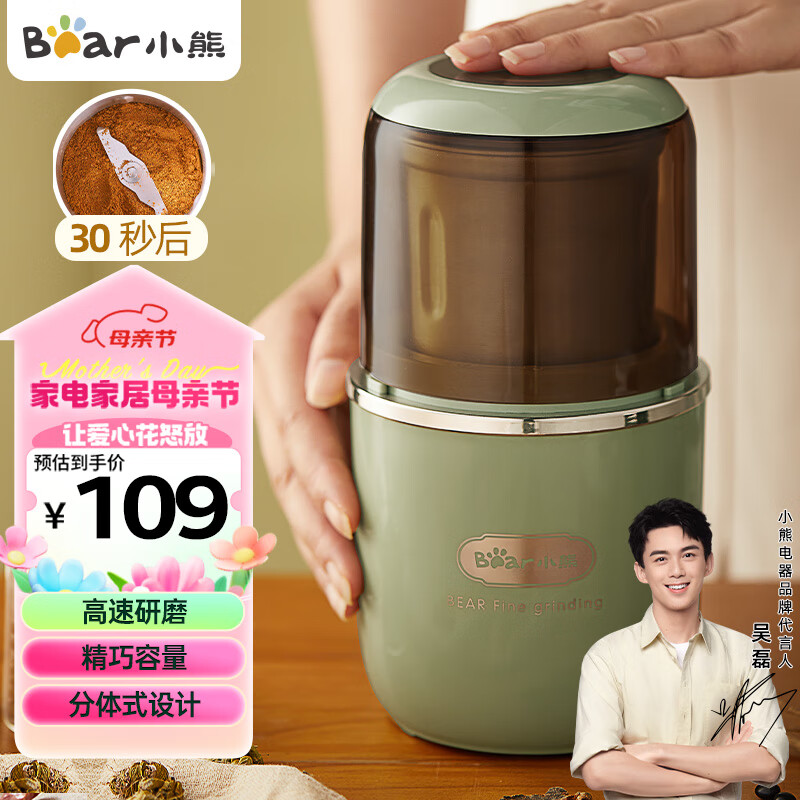 小熊(Bear)研磨机 家用磨粉机 中药粉碎机 五谷杂粮干粉机 药材小型超细打粉机 磨豆机MDJ-D02H1价格:109.00元!