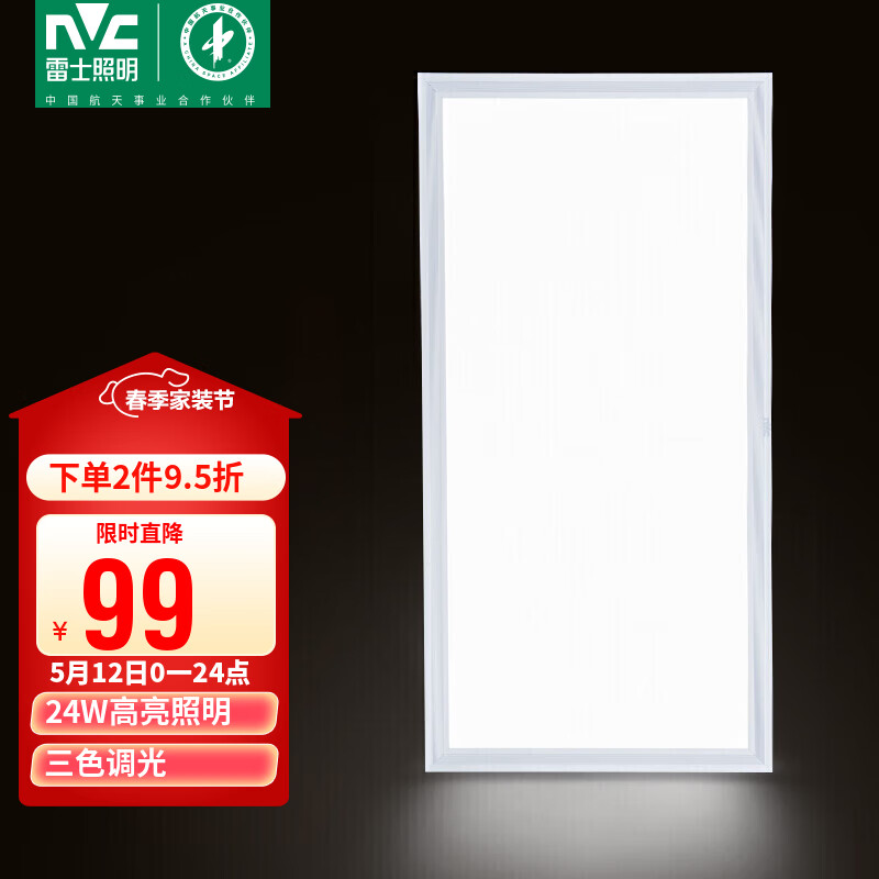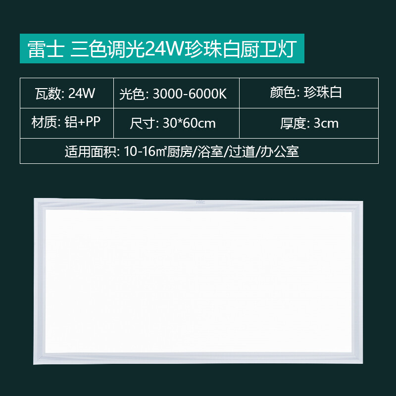 雷士(NVC)厨房灯 led集成吊顶厨卫灯吸顶灯 铝扣板卫生间平板灯 三色面板灯价格:99.00元!