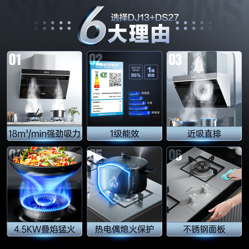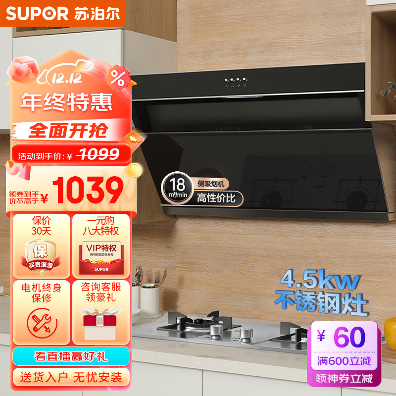 苏泊尔(SUPOR) 抽油烟机烟灶套装 18立方爆炒侧吸式家用吸油烟机燃气灶套装 DJ13+DS27液价格:1099.00元!