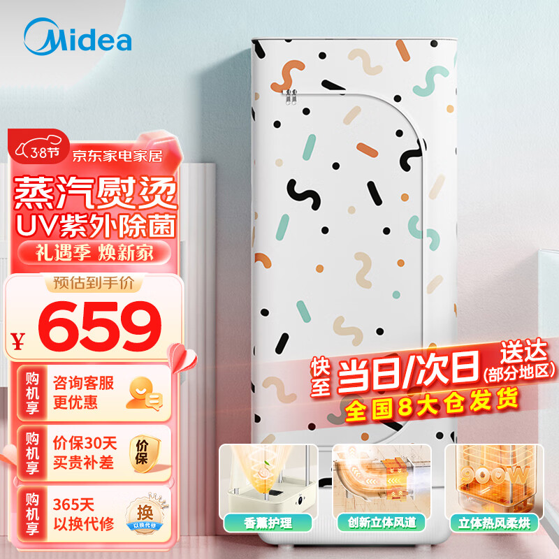 美的(Midea) 烘干机家用小型 婴儿烘衣机 智能蒸汽熨烫 紫外除菌香薰净味 衣物护理机 干衣机 MHJ70-02VQL价格:699.00元!