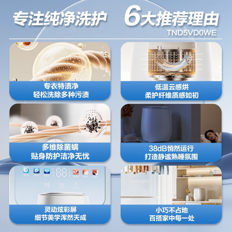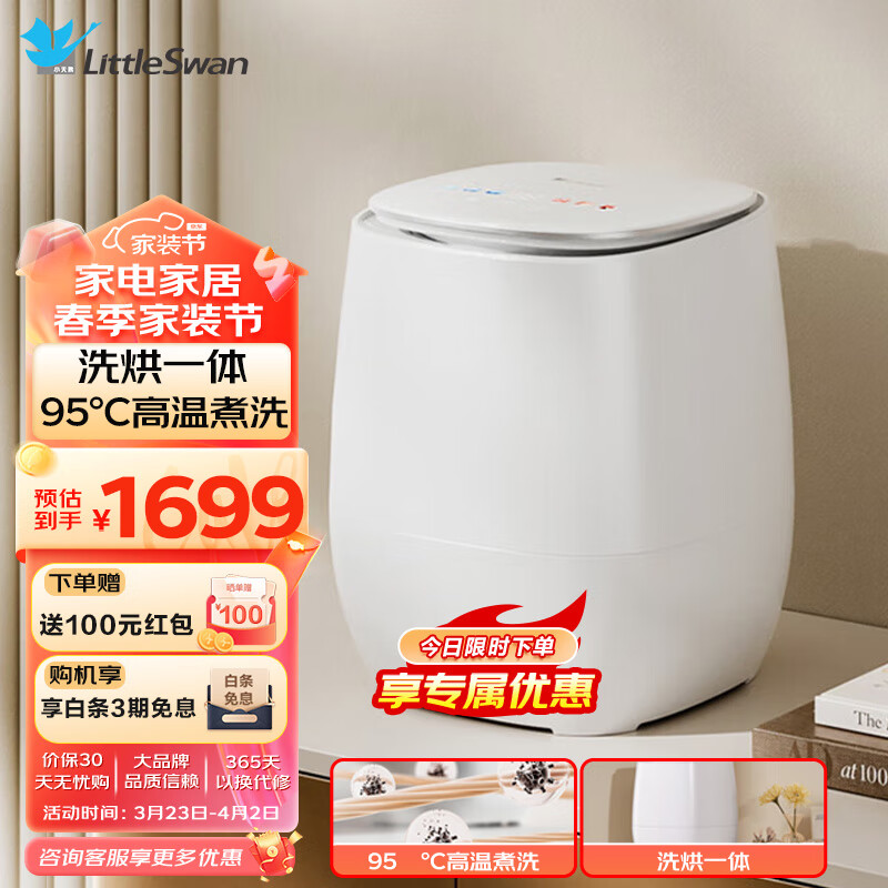 小天鹅(LittleSwan)0.5KG内衣洗衣机全自动带烘干迷你波轮婴儿洗衣机 高温煮洗除菌除螨 炫彩屏洗烘一体机TND5VD0WE价格:1699.00元!