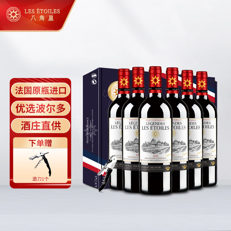 八角星节日送礼年货礼盒超波AOC原瓶进口红酒干红葡萄酒750ml*6瓶价格:598.00元!