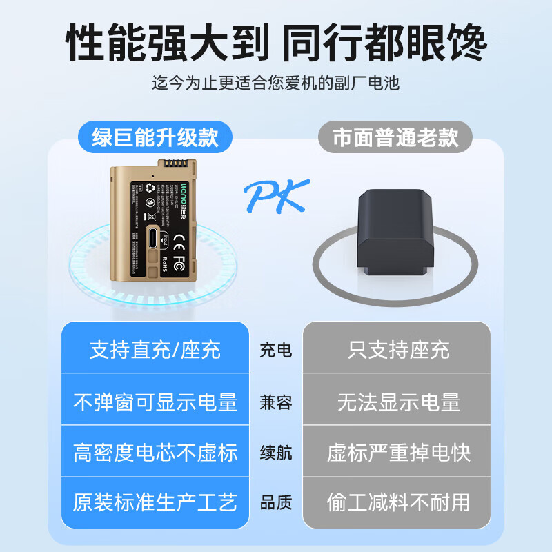 绿巨能(llano)尼康EN-EL15C相机电池d7000单反电池d7500 d7100 d800 d810 d850数码相机电池Type-C接口2400mAh价格:189.00元!