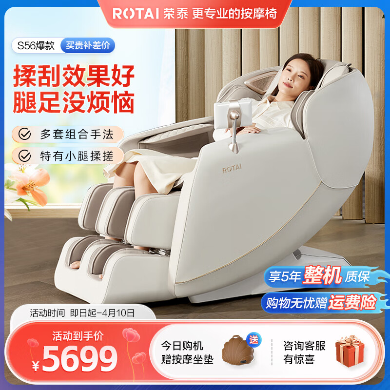 荣泰(RONGTAI)按摩椅家用全身揉捏全自动多功能太空舱按摩沙发椅S56 鹿皮米价格:6999.00元!