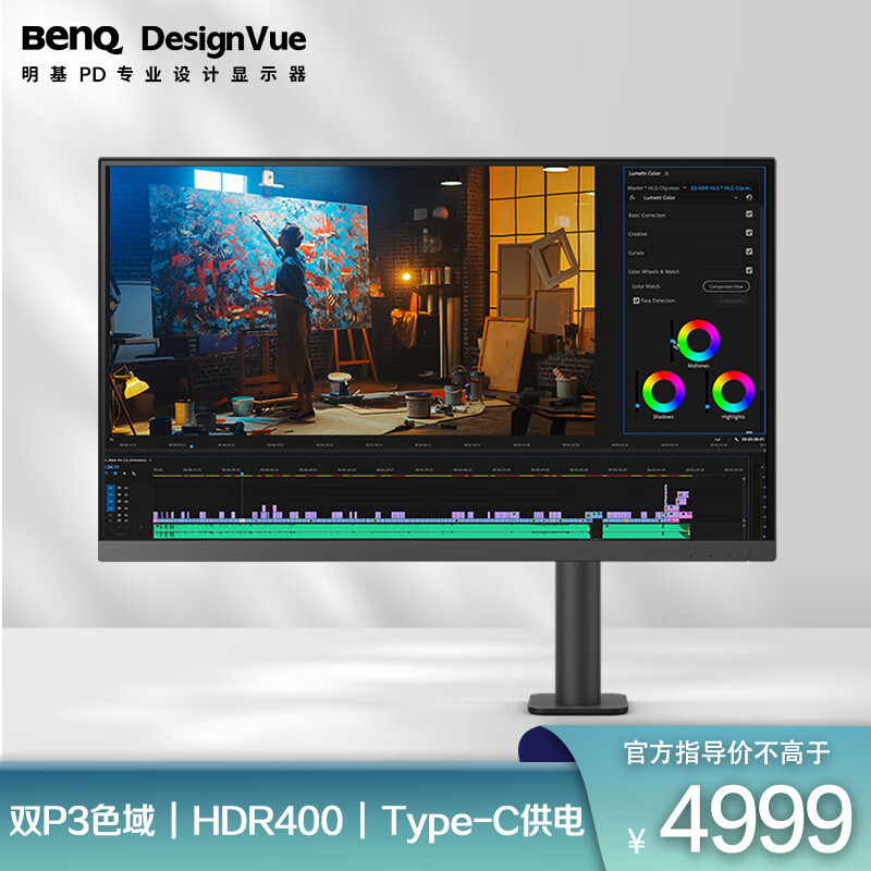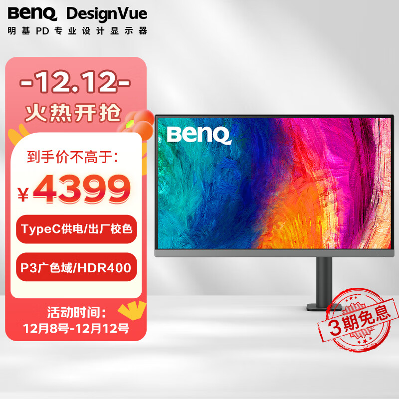 明基(BenQ)PD2706UA 27英寸4K 双P3色域 HDR400 90WType-C充电 ergo支架 专业设计修图显示器(OSD控制器)价格:4399.00元!
