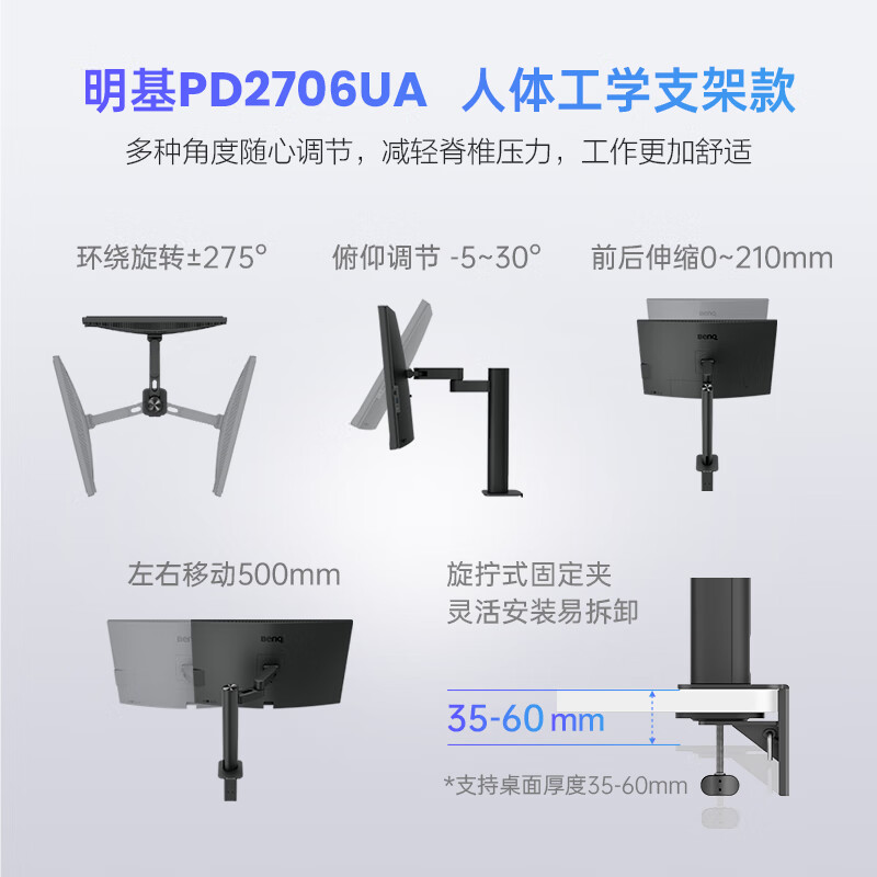 不得不说的是明基PD2706UA,总体感觉还满意的,之前用明基是PD2500Q,效果非常不错,由于工作需要,更换了4K分辨率的PD2705U,质量一如既往的好,功能丰富,99%sRGB完全可以满足修图的需求,MBook模式配合苹果笔记本,可以做到色彩统一,非常实用!