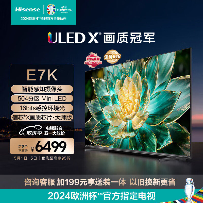 海信电视75E7K 75英寸 ULED X Mini LED 504分区 AI摄像头超感知 智慧屏 液晶智能平板电视机 以旧换新价格:6499.00元!