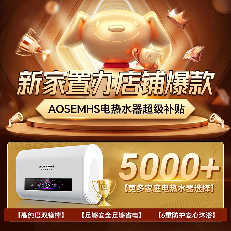 AOSEMHS扁桶电热水器家用洗澡储水式恒温一级能效50升速热2200W-DSZF-T06Y50价格:582.00元!