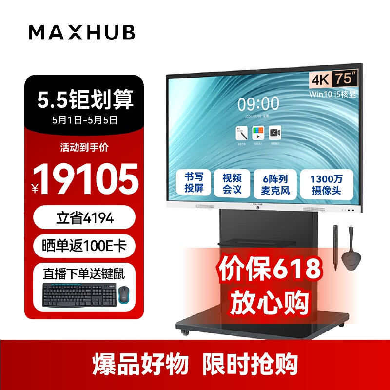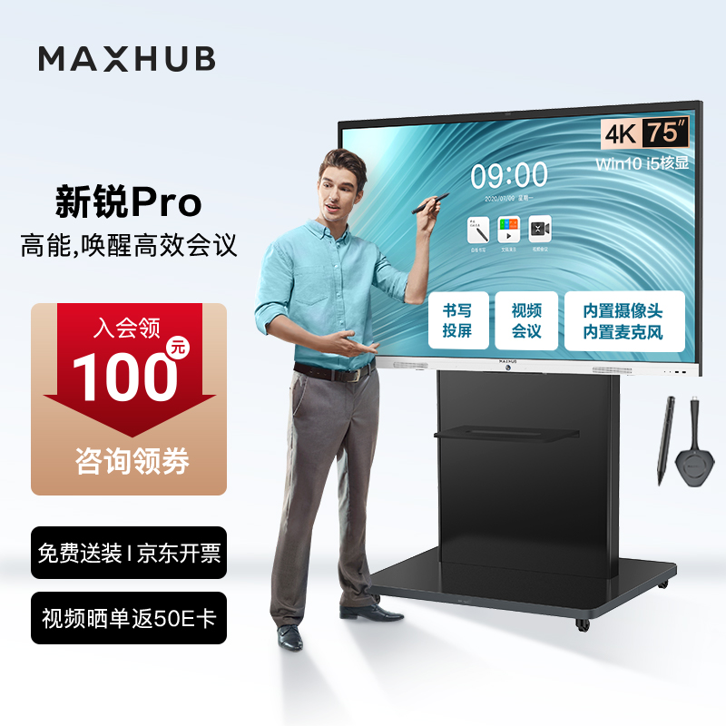 maxhub视频会议平板一体机教学智慧屏摄像头麦克风触摸屏白板新锐Pro75 Win10+商务支架+无线传屏+笔价格:22025.00元!