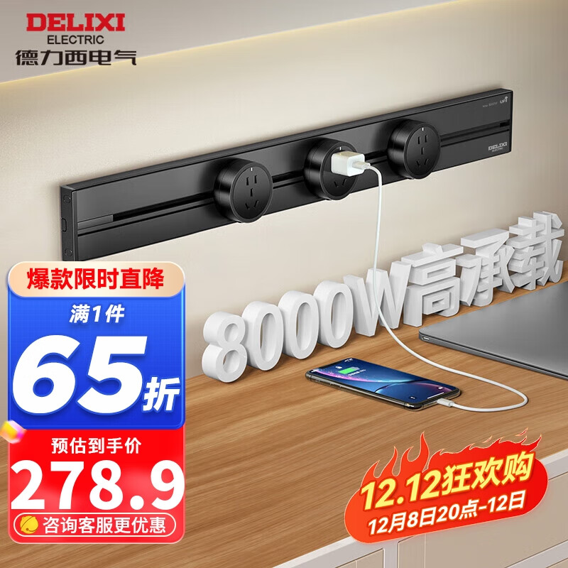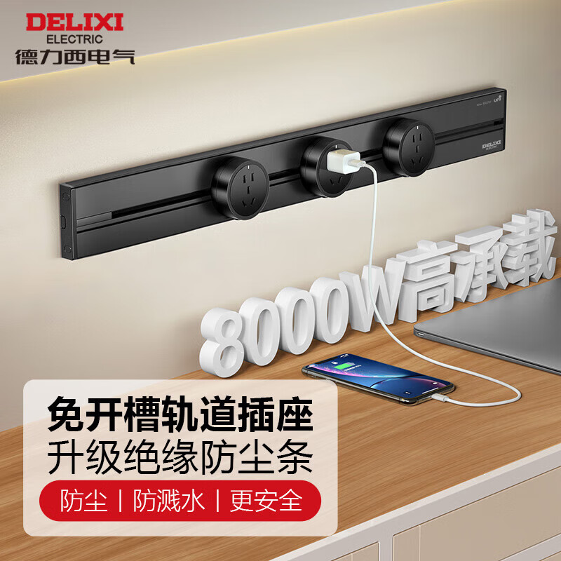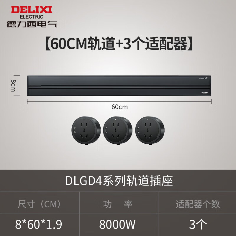 德力西(DELIXI)轨道插座 可移动插座壁挂式滑轨插座60厘米+3个五孔插座 黑色价格:429.00元!