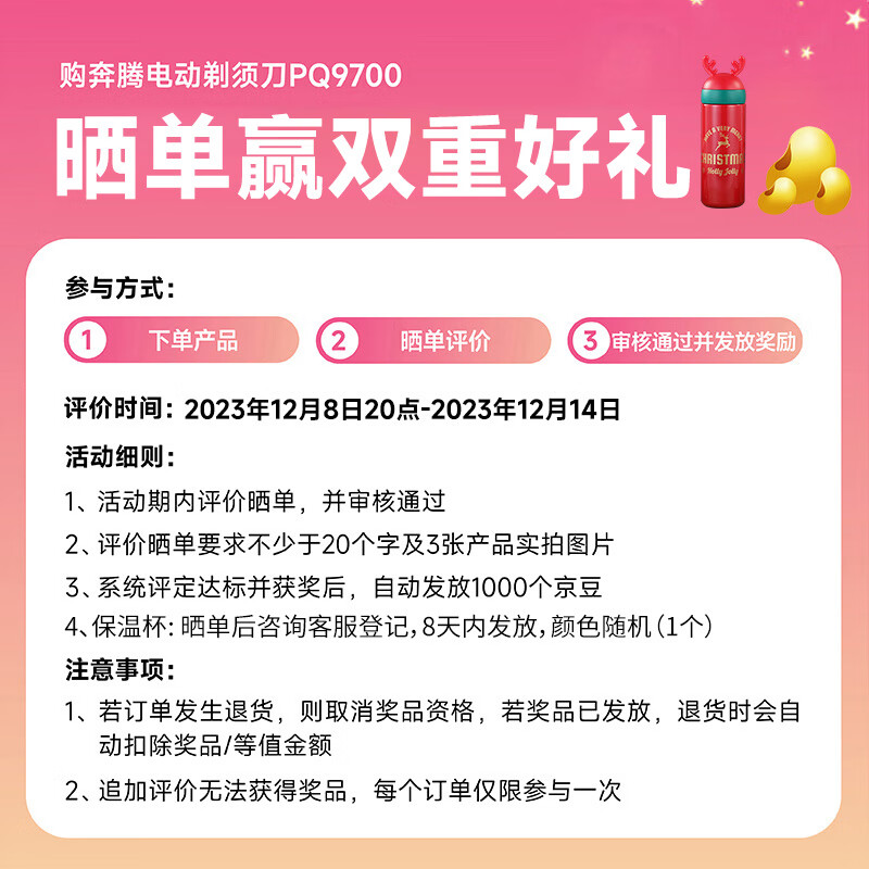 奔腾(POVOS)剃须刀电动刮胡刀胡须刀全身水洗快充PQ9700珊瑚红送男友送老公生日中秋节礼物价格:113.00元!
