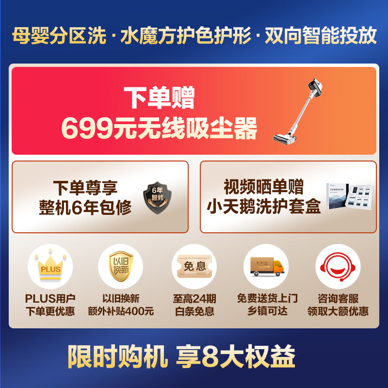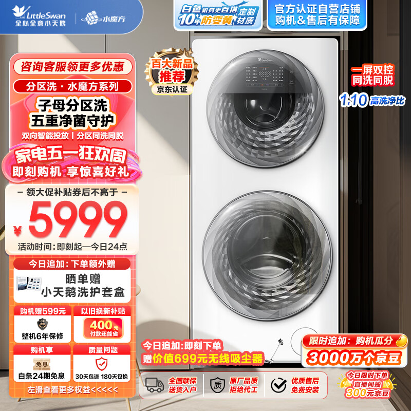 小天鹅(LittleSwan)滚筒洗衣机全自动【TGG13E】母婴分区洗 水魔方 白色防变黄 智能投放 同洗同脱 1.1洗净比 13公斤价格:6499.00元!