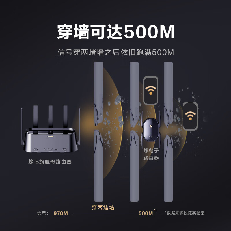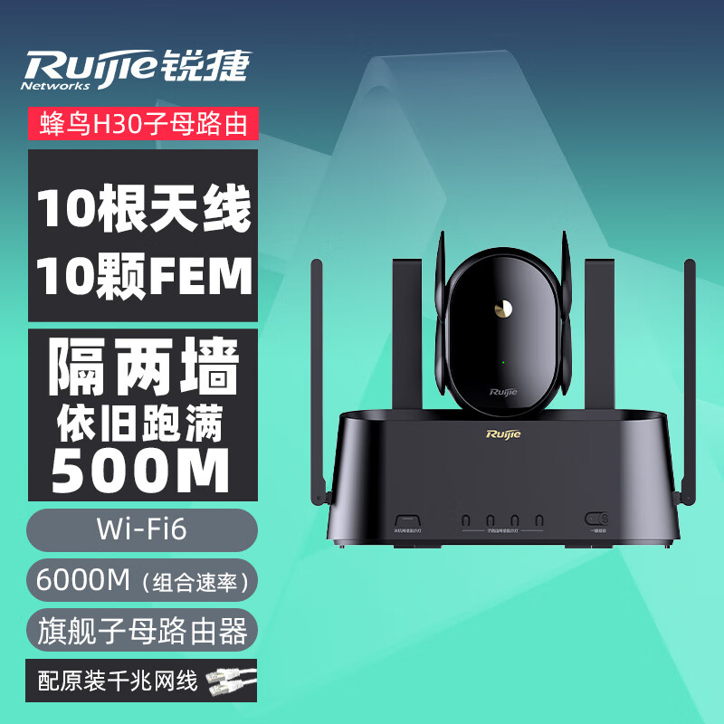 锐捷蜂鸟子母路由器 H30(1母1子套装)wifi6 千兆无线5G双频分布式路由 大户型路由 穿墙王家用全屋路由价格:799.00元!