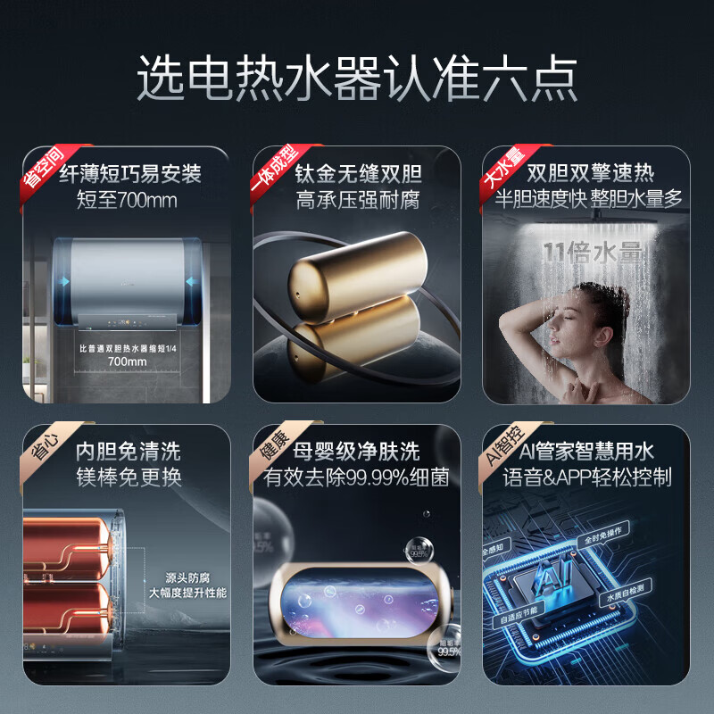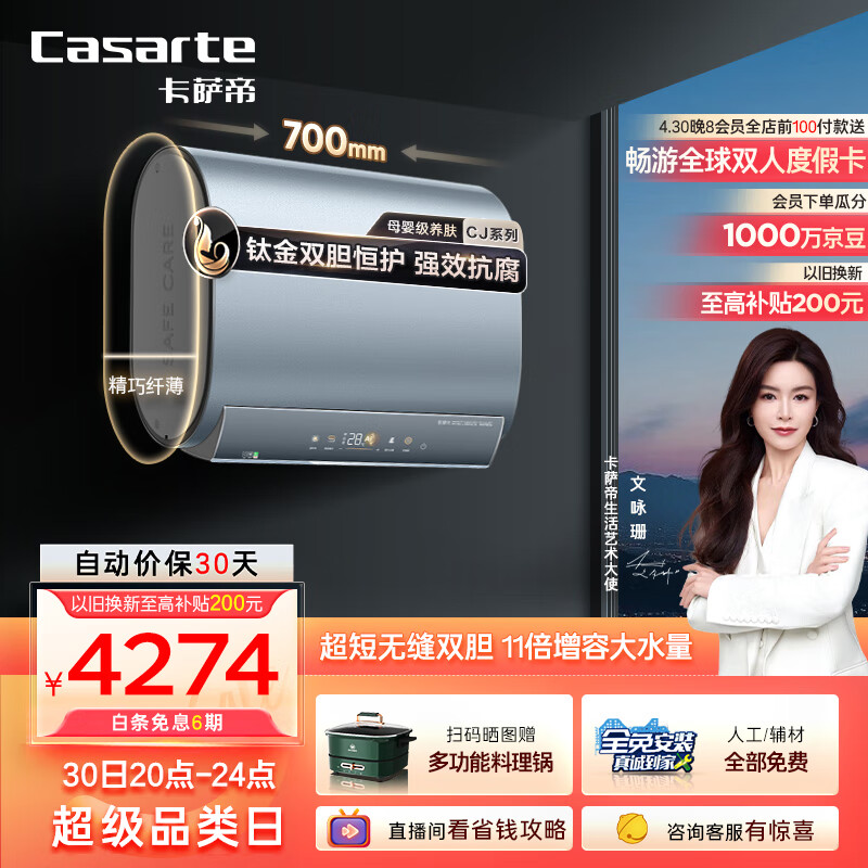 卡萨帝(Casarte)60升储水式电热水器家用超薄钛金无缝双胆扁桶型短款双驱速热一级能效CEC6005-CJ5U1【以旧换新】价格:4599.00元!