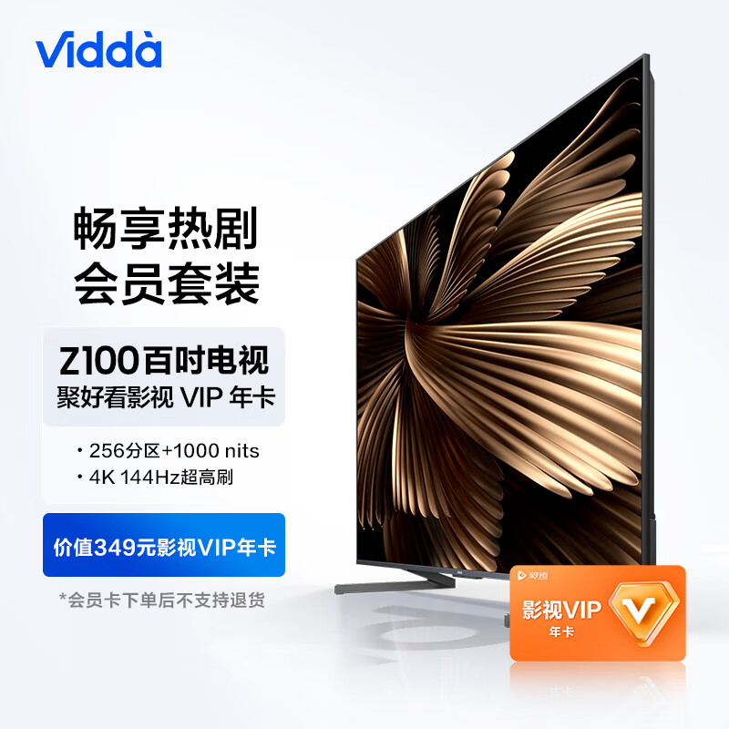 Vidda Z100海信100英寸巨幕 4+128G 256分区 144Hz 低音炮 98英寸+游戏电视+电视影视VIP会员年卡12个月价格:19999.00元!