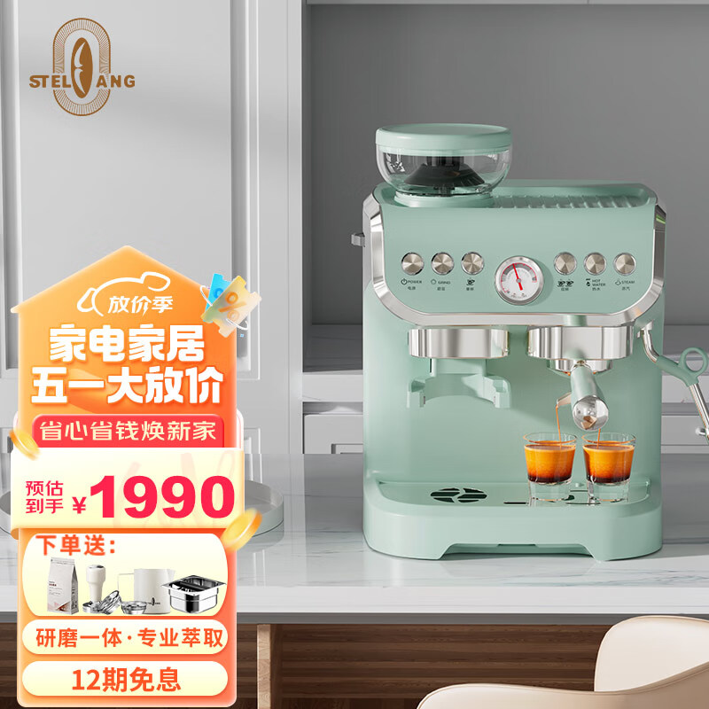 雪特朗(STELANG) 意式半自动咖啡机家用磨豆机奶泡机研磨一体咖啡机517E浅绿色 带可视表价格:1990.00元!