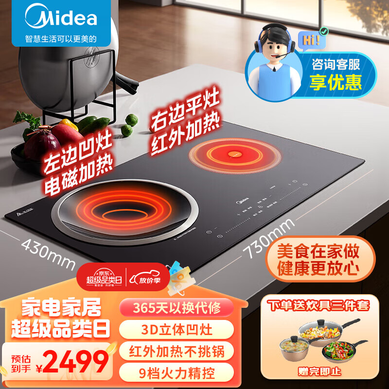 美的(Midea)电磁炉双灶 电磁灶家用大功率3500W电陶炉 一平一凹嵌入式不挑锅 智能触控滑控 MC-DZ35D06Q价格:2499.00元!