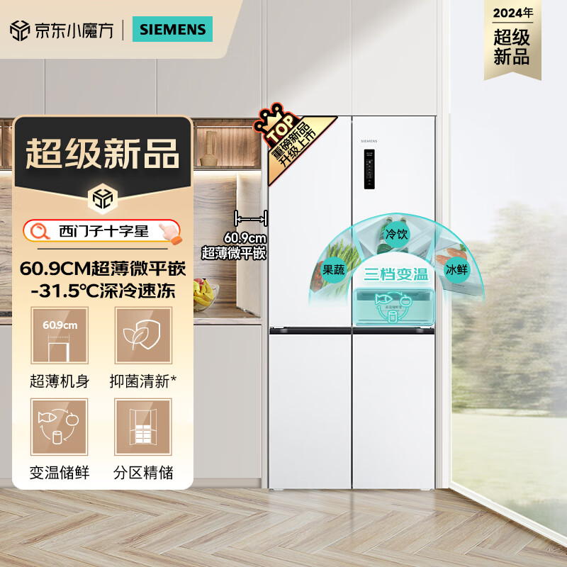 西门子(SIEMENS)十字星系列497升超薄微平嵌冰箱四开门十字四门嵌入式近60cm净味变温一级能效白色KC502080EC价格:5499.00元!