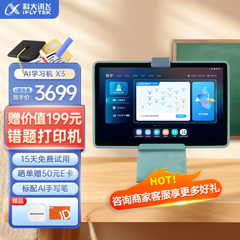 科大讯飞AI学习机X3 5G 大屏护眼平板 学生平板 学习机平板 英语学习机 支持5G 扩展内存 11英寸 6+128G价格:3699.00元!