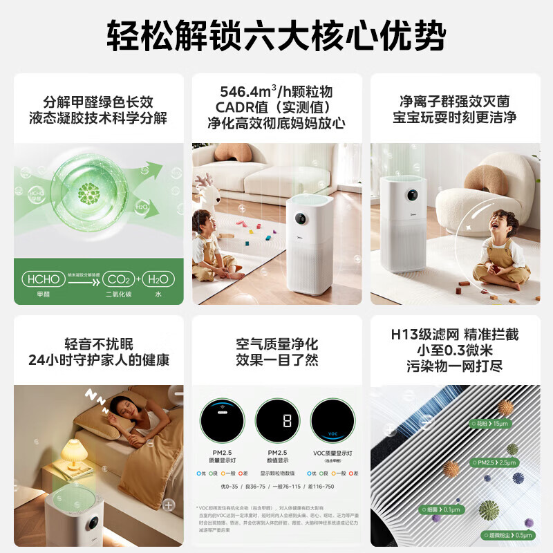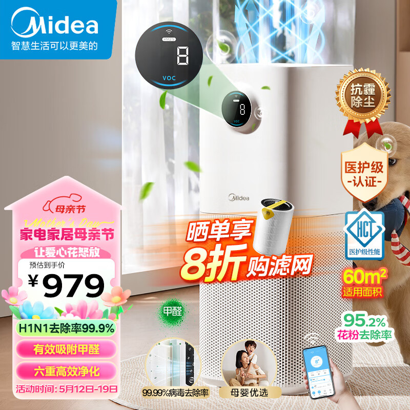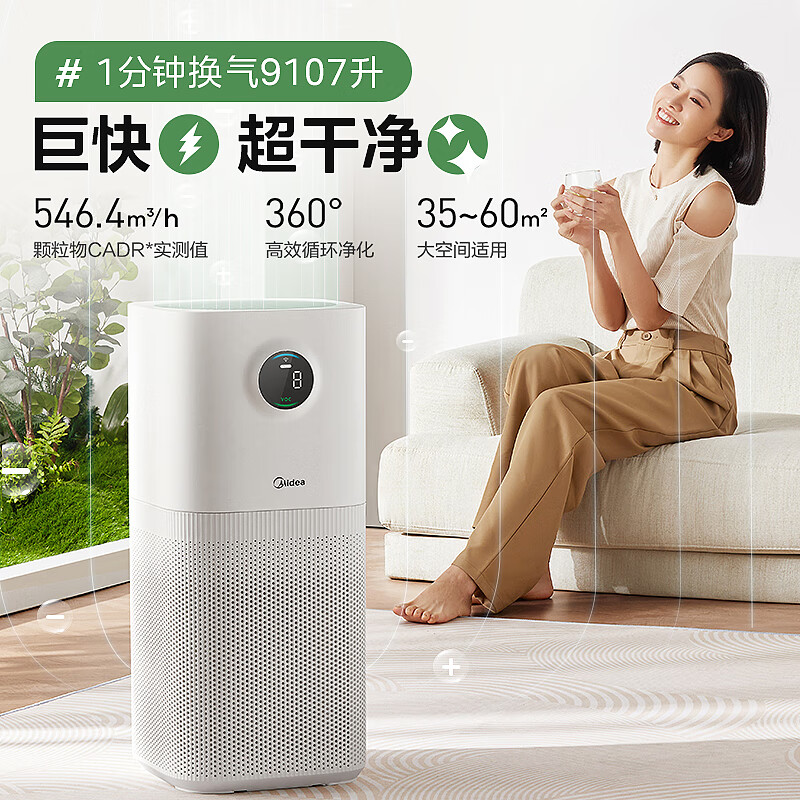 美的(Midea)【医护级】空气净化器“森林Air3S”除甲醛除花粉除过敏原99.99%除菌六重净化母亲节礼物KJ500G-L1价格:949.00元!